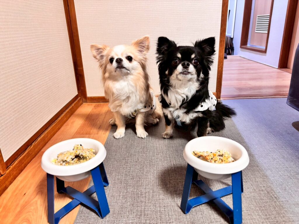 3頭の宿泊でしたが、ごはんの器は1頭につき6個も(笑)