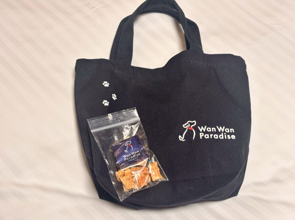 キャンペーン中ということで、お散歩バッグと愛犬ウェルカムおやつもいただきました。